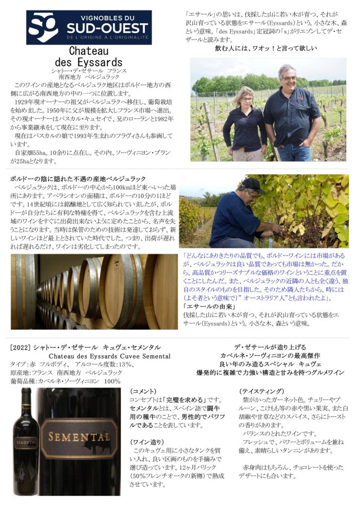にろや #にろやワインショプ #シャトーデゼサール #ChateaudesEyssards #Semental #セメンタル #キュヴェセメンタル #CuveeSemental