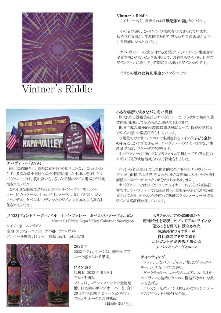 [2023]ヴィントナーズ・リドル ナパ・ヴァレー カベルネ・ソーヴィニヨン