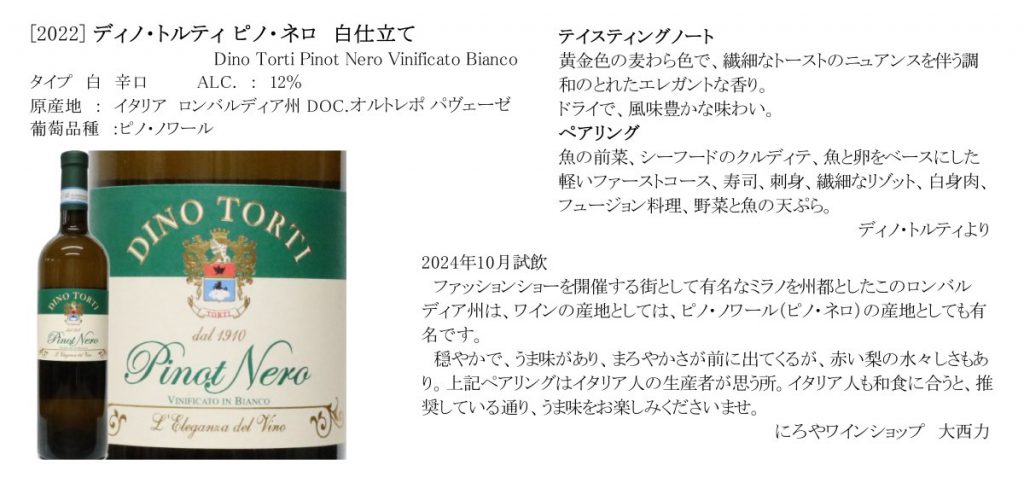 [2022] ディノ・トルティ ピノ・ネロ 白仕立て