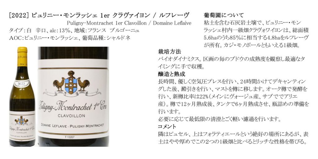 [2022] ピュリニー・モンラッシェ 1er クラヴァイヨン / ルフレーヴ