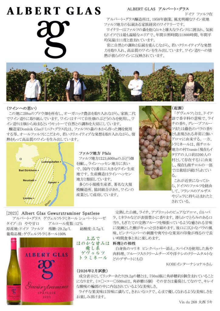[2023] アルバート・グラス ゲヴェルツトラミネール シュペートレーゼ