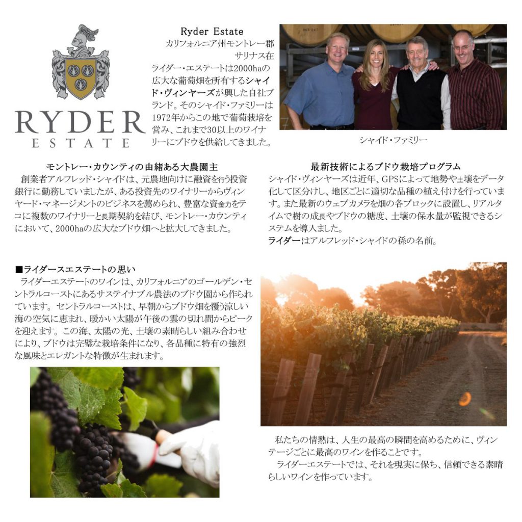 #にろや #にろやワインショプ #ライダーエステート #RyderEstate #ピノノワール #PinotNoir #シャルドネ #Chardonnay