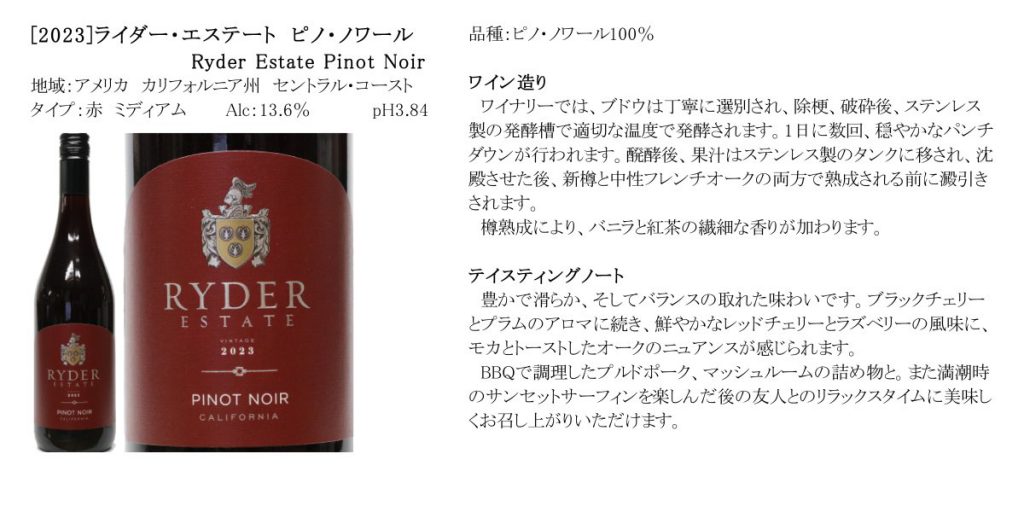 [2023]ライダー・エステート ピノ・ノワール