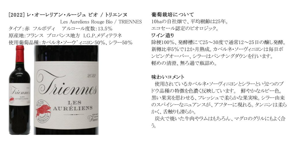 [2022] レ・オーレリアン・ルージュ ビオ / トリエンヌ