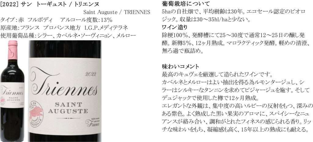 #にろや #にろやワインショプ #レオーレリアン #LesAureliens #トリエンヌ #TRIENNE #サントーギュスト #SaintAuguste