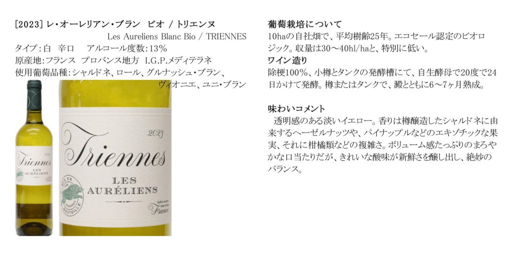 [2023] レ・オーレリアン・ブラン ビオ / トリエンヌ