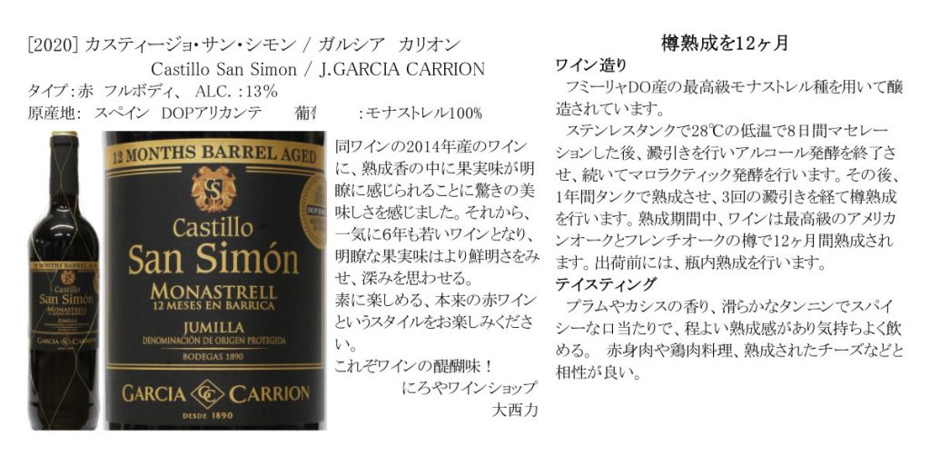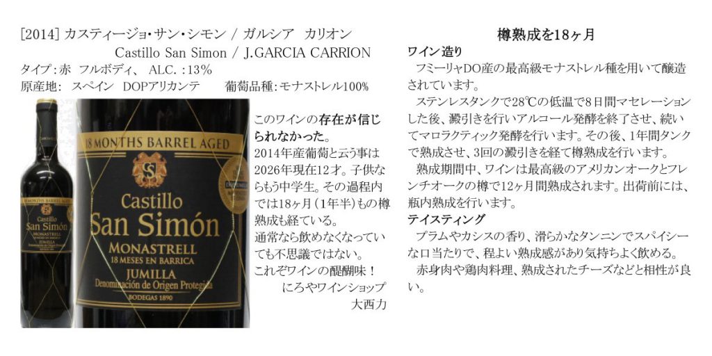 #にろや #にろやワインショプ #サンシモン #SanSimon #ガルシアカリオン #GARCIACARRION